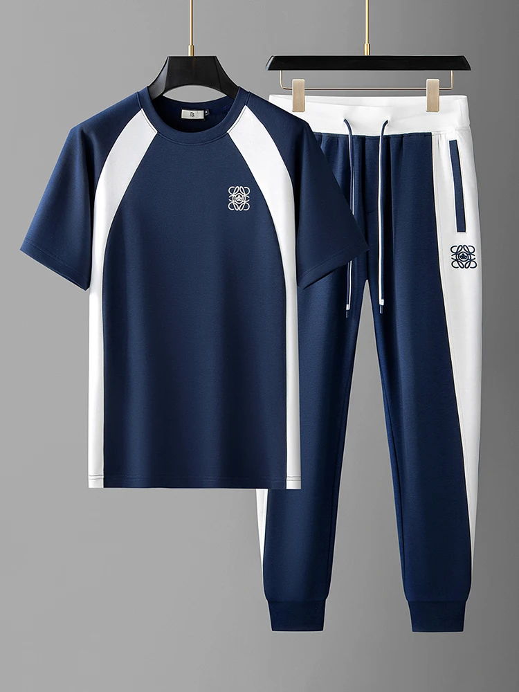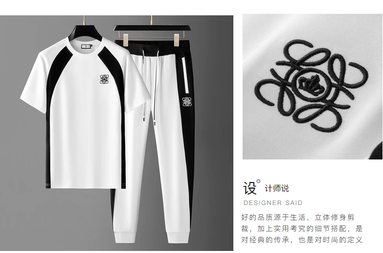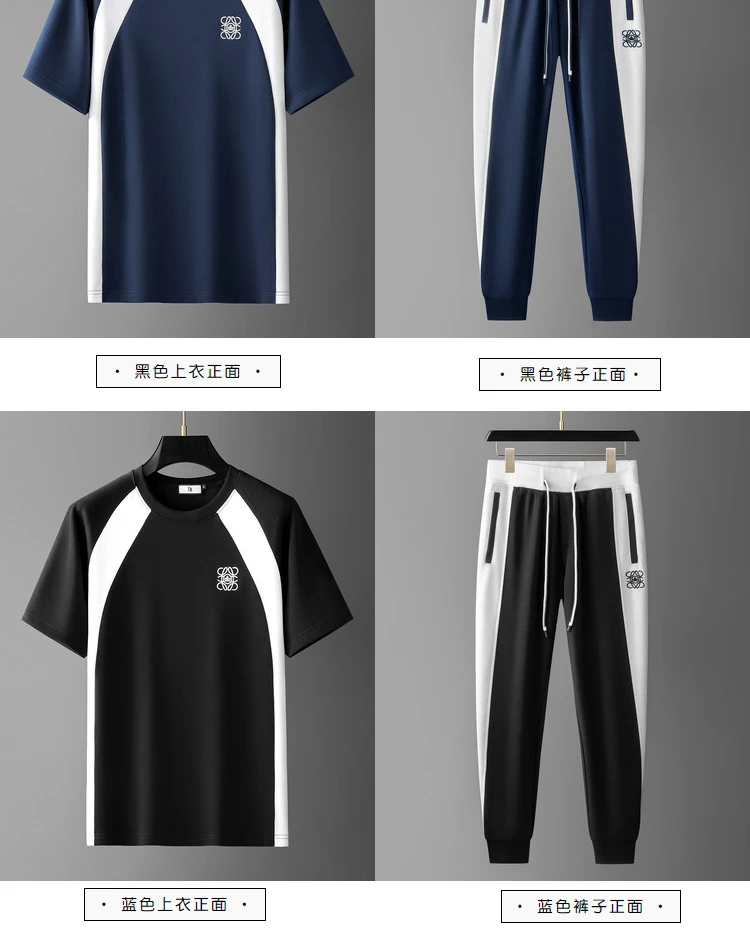بدلة رياضية قصيرة الأكمام للرجال JSBD-NZ ، لون متباين ، الربط ، امتداد الحرير الجليدي ، مريح ، كاجوال ، اتجاه الموضة ، شخصية ، الصيف
