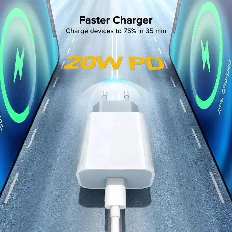 • شحن سريع:مع طاقة خرج قصوى تبلغ 20 واط ، يمكن لهذا الشاحن شحن هاتفك بسرعةلـأيفون 13 ، 12 ، 11 ، 14 برو ماكس ، أيفون 8 بلس ، إكس إس ماكس ، أو أيباد اير.