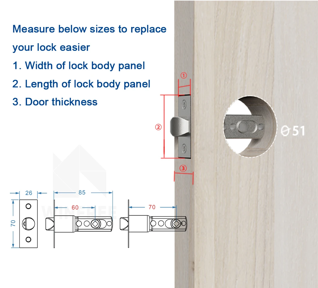 سهلة التركيب: مع ورقة تعليمات حفر ثقب الباب المقدمة ورمز QR للفيديو ، سهل جدا وسريع التثبيت. يمكن لهذا القفل أيضًا إعادة ربط أقفال الأبواب القديمة.