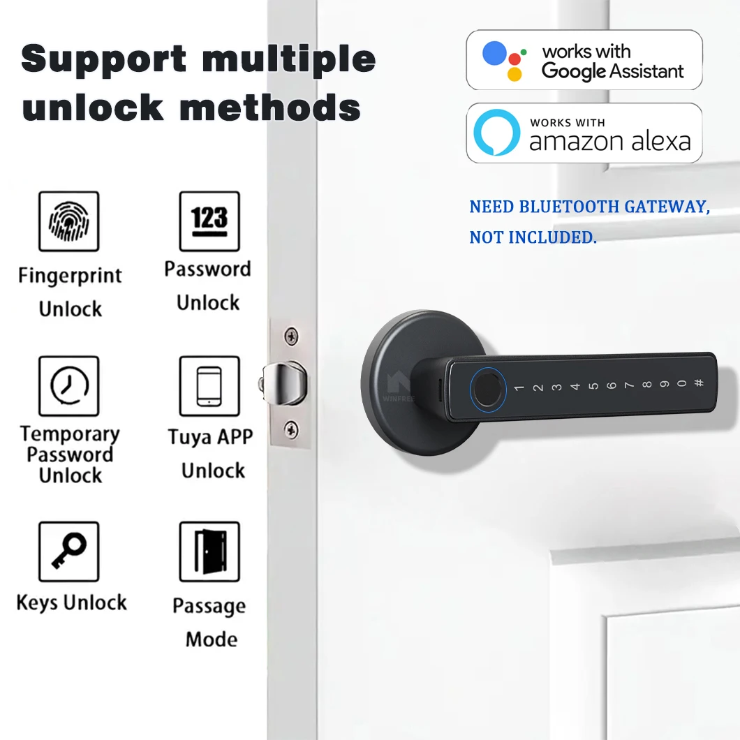 WINFREE قفل ذكي Tuya بلوتوث الوصول بدون مفتاح مكتب المنزل قفل بصمة الإصبع التحكم الصوتي مساعد Alexa جوجل